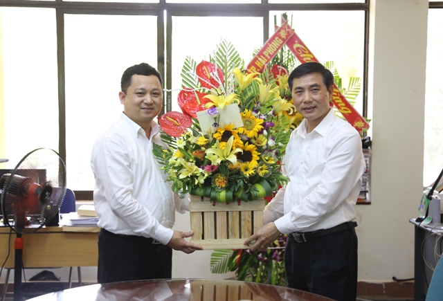 Đ/c Lương Hải Âu, Giám đốc Sở Thông tin và Truyền thông trao tặng lẵng hoa chúc mừng tới