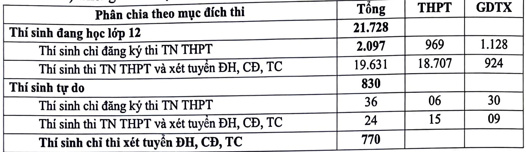 . Số thí sinh dự thi đại trà: 24.102; Số lượt thí sinh dự thi chuyên 2.786 (có thí sinh dự thi 02 môn chuyên);