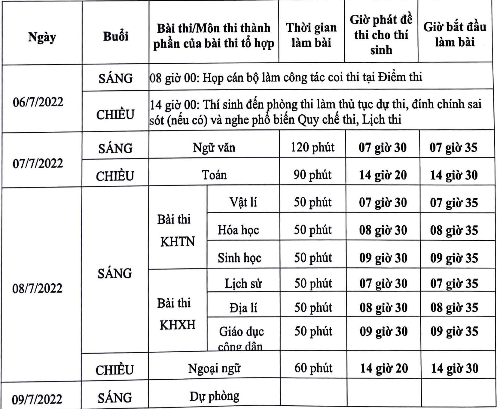 (1) Lịch công tác Kỳ thi: Thời gian công bố kết quả sớm 02 ngày (so với năm 2021): 24/7/2022;