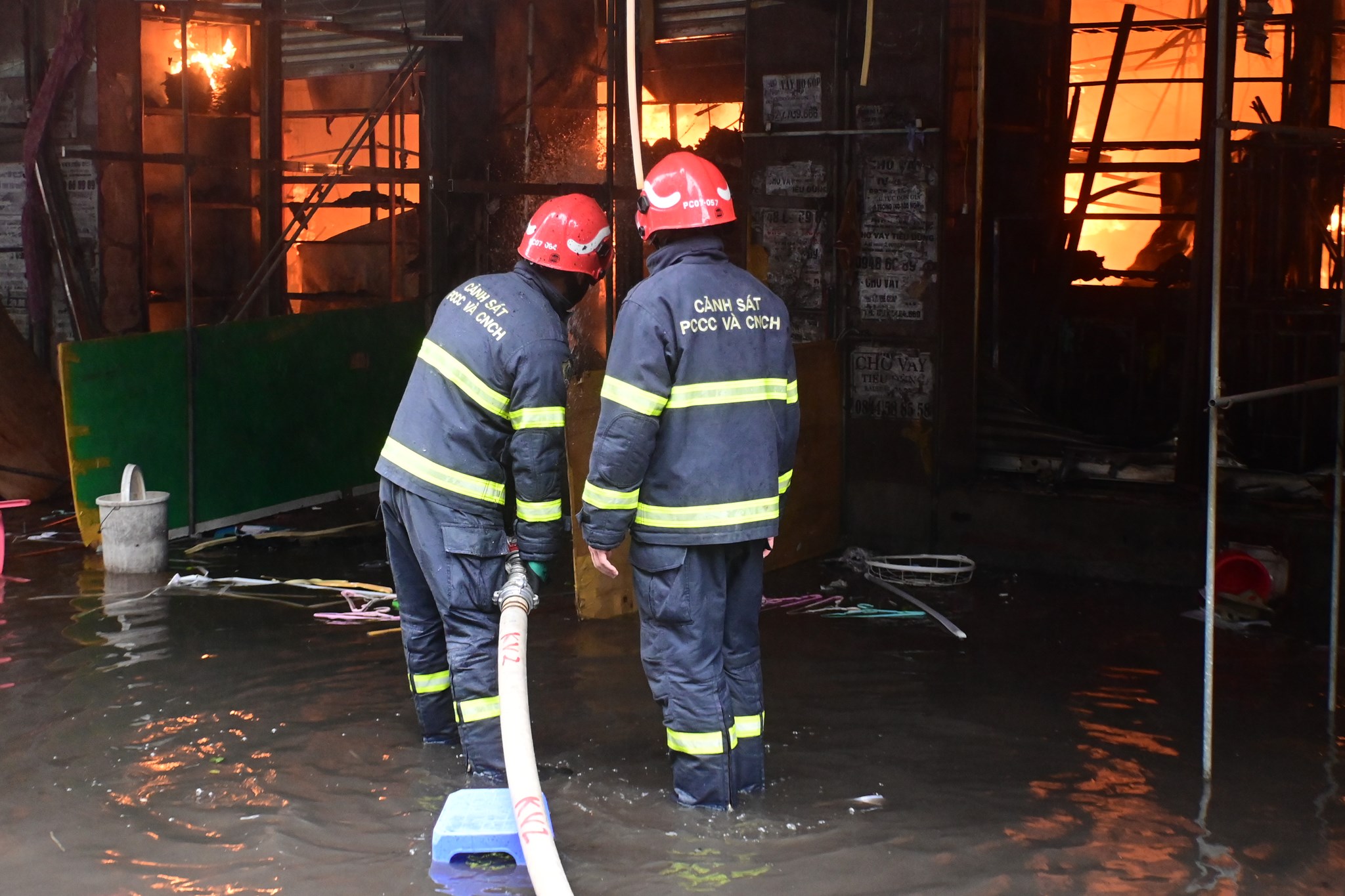 Hiện lực lượng Cảnh sát PCCC và CNCH CATP và các lực lượng liên quan tiếp tục phun nước chống cháy lan và dập lửa.