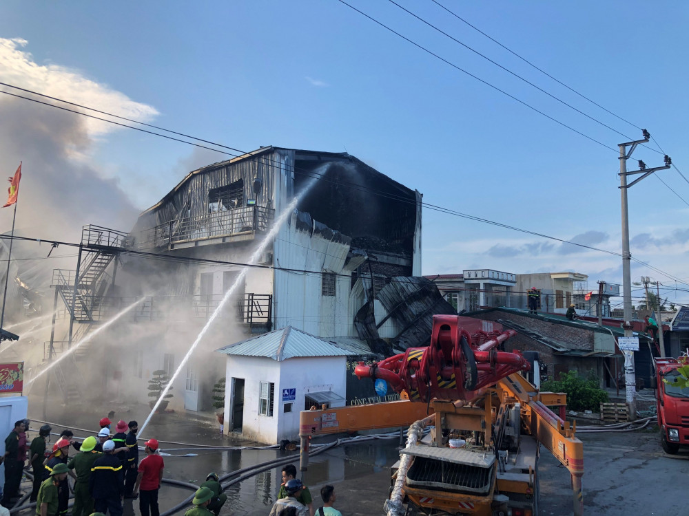 Khi lực lượng chức năng có mặt, lửa vẫn đang bốc cháy tại kho nguyên liệu 3 tầng, diện tích mặt bằng 360m²/tầng. Lực lượng PCCC và CHCN kịp thời hướng dẫn công nhân thoát khỏi đám cháy, không thiệt hại về người.