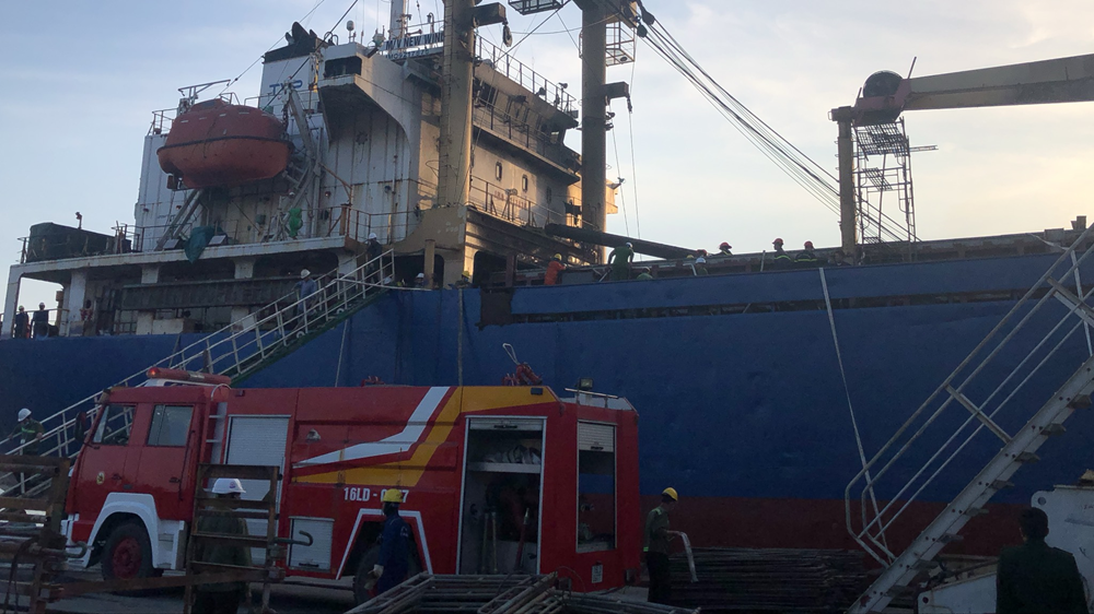 Theo đó, khoảng 15h57’ ngày 26-2, xảy ra nổ két dầu làm cháy khu vực hầm hàng số 2 của tàu chở hàng rời đang sửa chữa. Lãnh đạo cơ sở đã khẩn trương thông báo cho các cơ quan chức năng và phối hợp với các thành viên trong Cụm an toàn PCCC Minh Đức hỗ trợ chữa cháy.