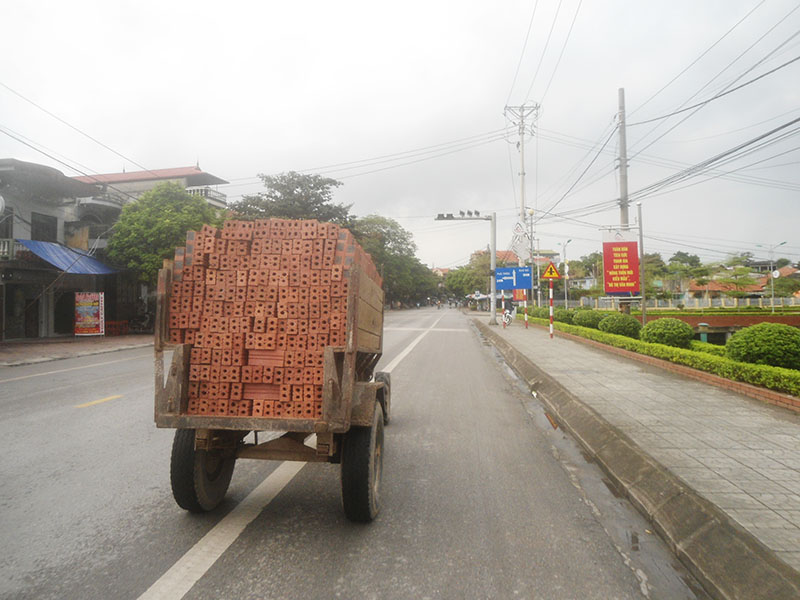 Xe công nông chở vật liệu xây dựng không được che đậy lưu thông trên QL18. (ảnh internet)