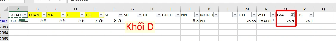 Điểm số của thủ khoa khối D (Ảnh chụp màn hình).