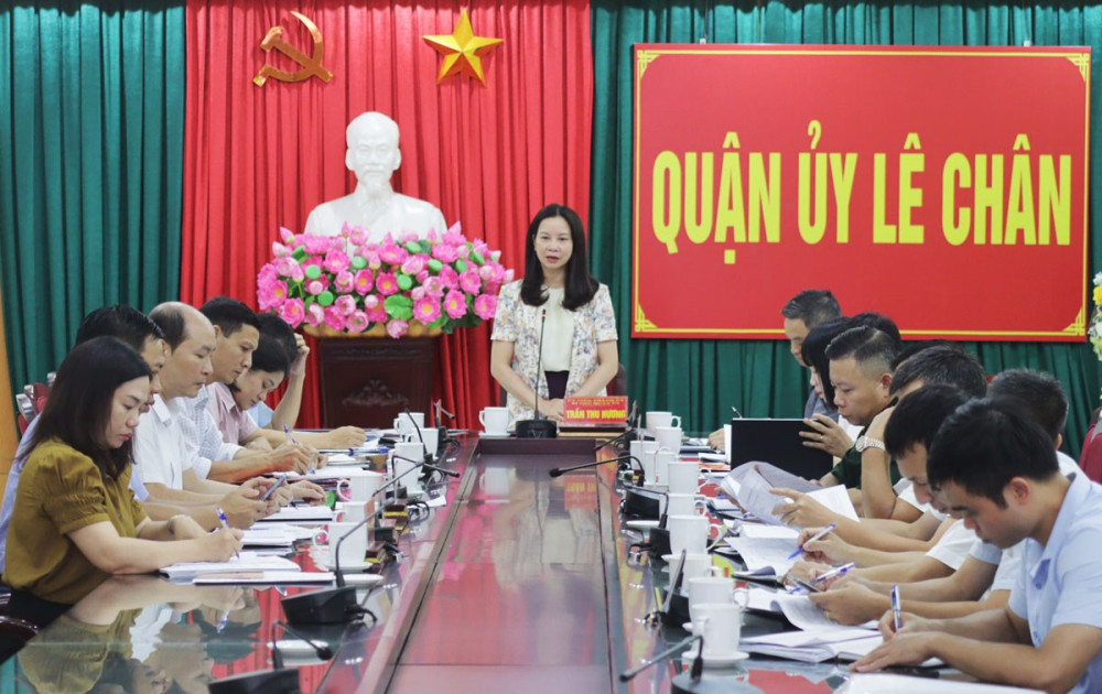 Chiều 31/8, Thường trực Quận ủy Lê Chân triệu tập hội nghị Ban Thường vụ Quận ủy đánh giá kết quả thực hiện nhiệm vụ tháng 8; triển khai nhiệm vụ trọng tâm tháng 9/2023. Đồng chí Trần Thu Hương, Ủy viên Thành ủy, Bí thư Quận ủy chủ trì hội nghị.