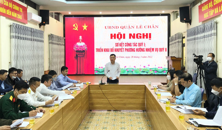 Sáng 28/3, UBND quận Lê Chân tổ chức Hội nghị sơ kết công tác quý I; triển khai bổ khuyết phương hướng, nhiệm vụ quý II/2022.