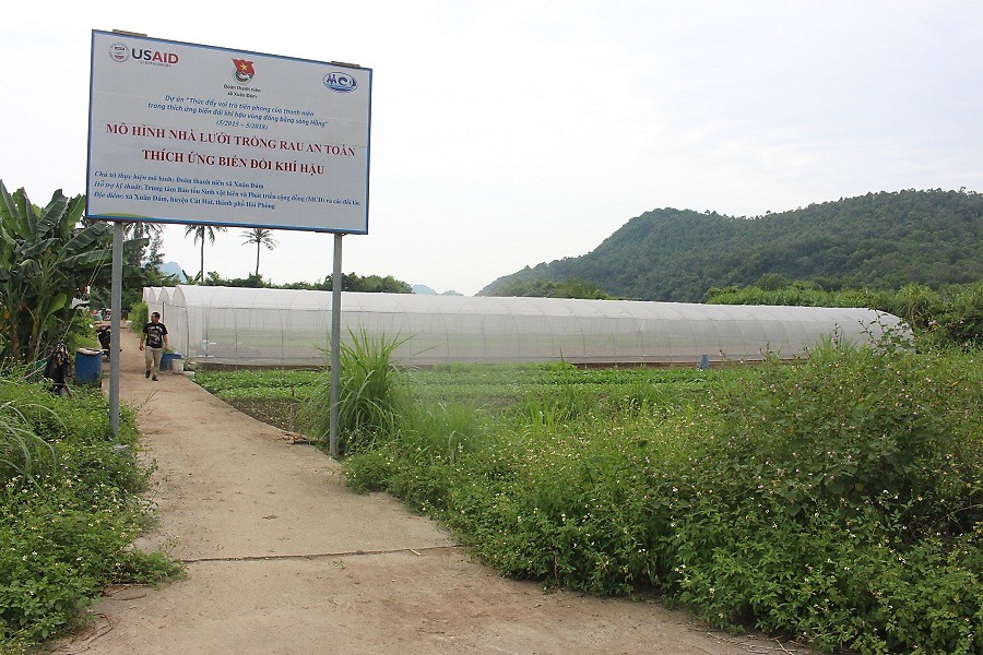 Mô hình nhà lưới trồng rau an toàn thích ứng biến đổi khí hậu do Đoàn Thanh niên xã Xuân Đám chủ trì thực hiện, với sự hỗ trợ của Trung tâm Bảo tồn sinh vật biển và Phát triển cộng đồng (gọi tắt là MCD, tổ chức phi chính phủ hoạt động trong lĩnh vực bảo tồn biển và phát triển bền vững vùng ven biển Việt Nam). MCD hỗ trợ địa phương đầu tư nhà lưới, giống, máy bơm nước, đồng thời tập huấn kỹ thuật trồng rau trong điều kiện khắc nghiệt ở xã đảo, kỹ thuật ủ phân vi sinh bón cho rau.