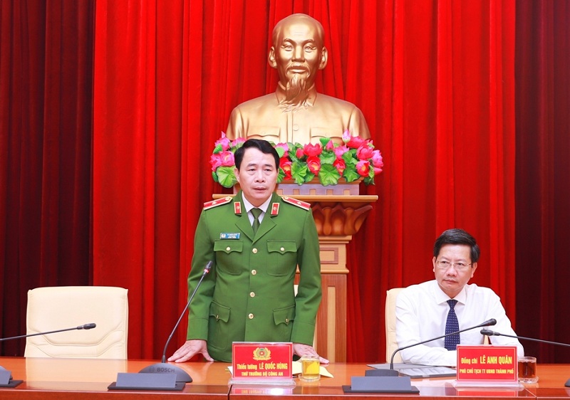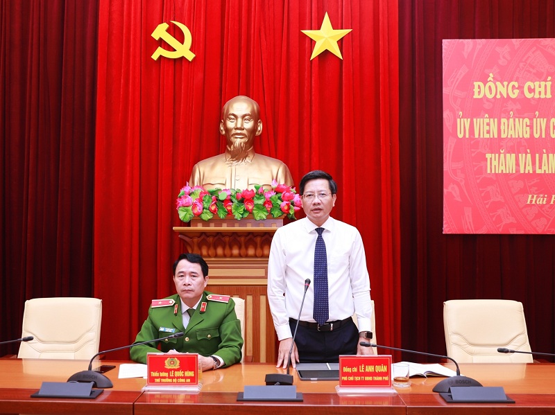 Thứ trưởng Lê Quốc Hùng tiếp thu các ý kiến, kiến nghị của Công an Hải Phòng, chỉ đạo lãnh đạo các Cục nghiệp vụ Bộ Công an tham gia đoàn công tác cùng trao đổi, hướng dẫn Công an Hải Phòng giải quyết theo thẩm quyền và quy định của pháp luật. Đồng chí Thứ trưởng Bộ Công an bày tỏ tin tưởng, với tinh thần đoán kết nhất trí, đổi mới sáng tạo, nêu cao vai trò, trách nhiệm, lãnh đạo và toàn thể lực lượng Công an Hải Phòng sẽ hoàn thành xuất sắc mọi nhiệm vụ, góp phần quan trọng vào sự nghiệp phát triển kinh tế-xã hội, giữ vững ổn định ANTT thành phố Hải Phòng nói riêng và cả nước nói chung.