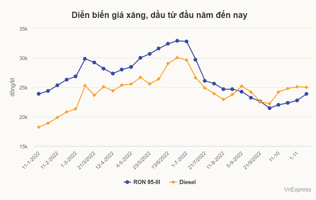 Giải thích thực trạng này tại giao ban báo chí ngày 15/11, Thứ trưởng Công Thương Đỗ Thắng Hải cho hay, vừa qua giá thế giới tăng mạnh 57-85% so với cùng kỳ 2021 nên doanh nghiệp xăng dầu bị lỗ. Bởi họ đã nhập khẩu khối lượng lớn với giá cao, sau đó giá lại giảm và chi phí kinh doanh chưa được tính đúng, đủ… Điều này khiến doanh nghiệp, nhất là doanh nghiệp đầu mối tư nhân thu hẹp kinh doanh, nhập khẩu xăng dầu cầm chừng và cắt giảm các chi phí, trong đó có cắt chiết khấu khâu bán hàng, dẫn tới hàng bán ra bị đứt đoạn.