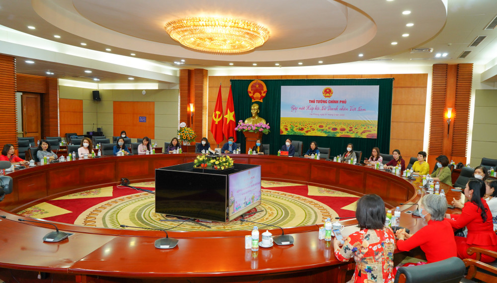 Chiều 7/3, tại trụ sở Chính phủ, Thủ tướng Chính phủ Phạm Minh Chính gặp mặt Hiệp hội Nữ doanh nhân Việt Nam. Cuộc gặp mặt được truyền trực tuyến tới các điểm cầu tại 28 tỉnh, thành phố, với sự tham dự của gần 1.000 nữ doanh nhân.
