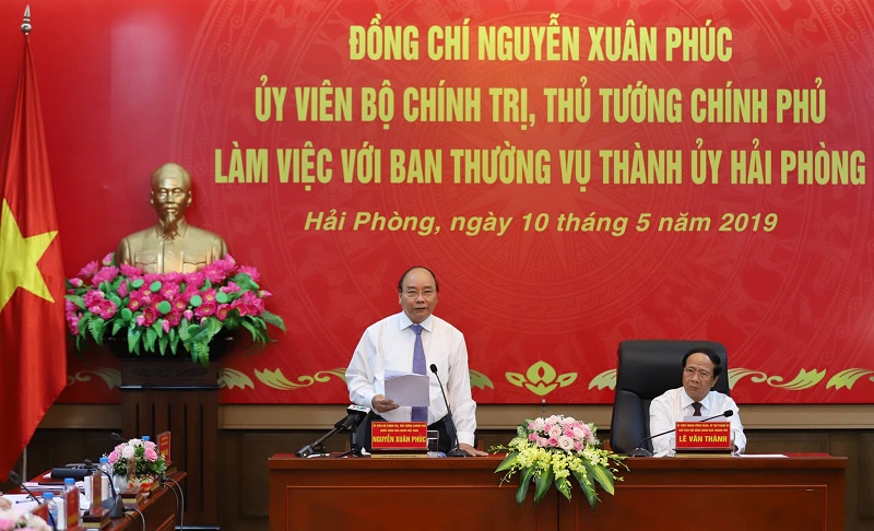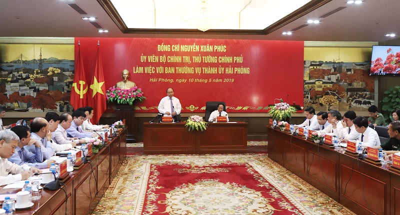 Nhân dịp tiếp xúc cử tri chuẩn bị kỳ họp thứ 7, Quốc hội khóa XIV và tham dự các hoạt động kỷ niệm 64 năm Ngày giải phóng Hải Phòng, chiều 10-5, đồng chí Nguyễn Xuân Phúc, Ủy viên Bộ Chính trị, Thủ tướng Chính phủ đã có buổi làm việc với tập thể Ban thường vụ Thành ủy Hải Phòng về tình hình, kết quả thực hiện nhiệm vụ kinh tế – xã hội 4 tháng đầu năm 2019.