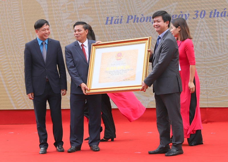 Tại buổi lễ, đồng chí Thứ trưởng Bộ VH-TT&DL Lê Quang Tùng đã trao Bằng công nhận di tích lịch sử cấp quốc gia của Bộ trưởng Bộ VH-TT&DL đối với Nhà tưởng niệm đồng chí Nguyễn Đức Cảnh cho lãnh đạo UBND TP và LĐLĐ TP Hải Phòng.