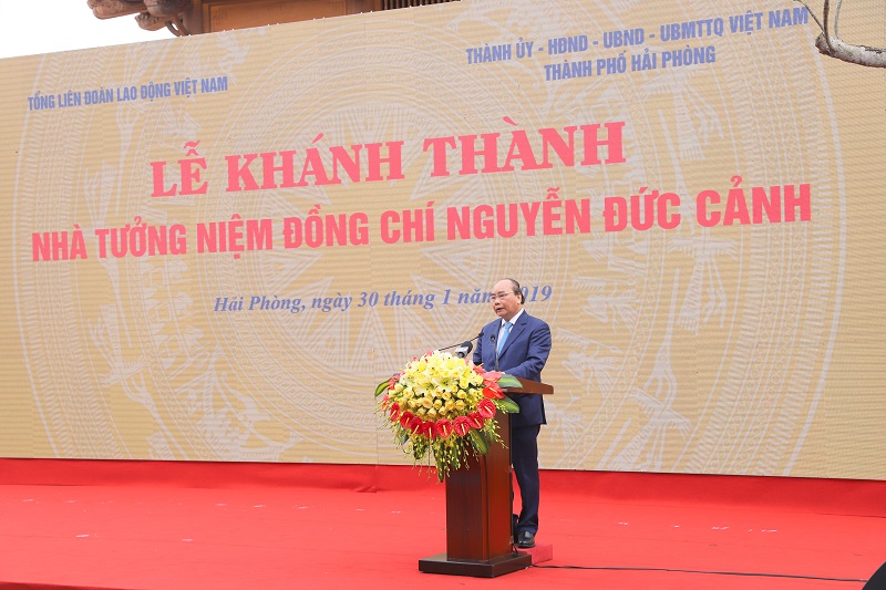 Phát biểu tại lễ khánh thành, Thủ tướng Nguyễn Xuân Phúc khẳng định, cuộc đời hoạt động cách mạng của đồng chí Nguyễn Đức Cảnh là một tấm gương sáng về đạo đức anh hùng cách mạng, không ngừng chiến đấu, hy sinh vì độc lập tự do của Tổ quốc, vì hạnh phúc của nhân dân. Thủ tướng Nguyễn Xuân Phúc ghi nhận, đánh giá cao tình cảm, trách nhiệm của Đảng bộ, chính quyền, quân và dân TP Hải Phòng và Tổng LĐLĐ Việt Nam đã cùng các doanh nghiệp, nhà hảo tâm và CNLĐ cả nước đóng góp kinh phí xây dựng công trình, để ghi nhớ công lao của đồng chí Nguyễn Đức Cảnh.