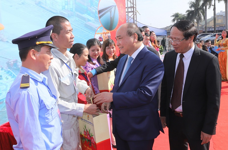 Thủ tướng Nguyễn Xuân Phúc cùng lãnh đạo TổngLĐLĐ VN, lãnh đạo TP Hải Phòng tặng quà Tết công nhân