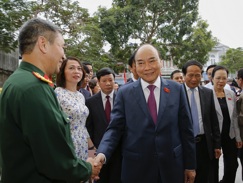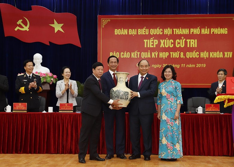 Sau khi nghe ý kiến phát biểu của cử tri huyện Cát Hải, Thủ tướng Nguyễn Xuân Phúc bày tỏ vui mừng được về dự tiếp xúc với đông đảo bà con cử tri huyện đảo Cát Hải. Thủ tướng nhấn mạnh đến những kết quả quan trọng của kỳ họp thứ 8, Quốc hội khóa XIV, trong đó có công tác lập pháp. Chính phủ, Thủ tướng Chính phủ đã có nhiều nỗ lực trong việc trình Quốc hội nhiều quyết sách quan trọng như: Hiệp định phân giới cắm mốc biên giới trên bộ Việt Nam – Campuchia; các chính sách thúc đẩy phát triển kinh tế – xã hội, giữ gìn, phát huy bản sắc văn hóa, nâng cao đời sống đồng bào các dân tộc thiểu số, miền núi; trình Quốc hội xem xét quy định về độ tuổi nghỉ hưu cho phù hợp với điều kiện kinh tế – xã hội và tuổi thọ trung bình của người Việt Nam…