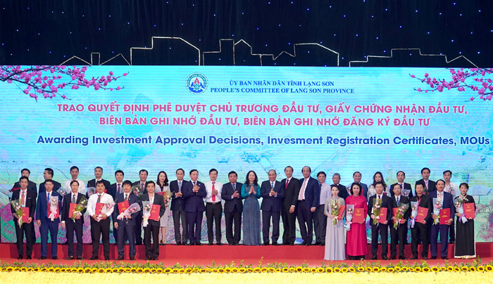 Thủ tướng cho biết, vừa qua, nhiều địa phương tổ chức xúc tiến đầu tư, đưa các nguồn vốn ký kết tại hội trường vào cuộc sống, vì thế, năm nay, vốn đầu tư xã hội chiếm tới 34% GDP. Do đó, Thủ tướng yêu cầu tỉnh Lạng Sơn sau đợt xúc tiến với số vốn hơn 105.000 tỷ đồng này, cần cùng với các nhà đầu tư bắt tay vào công việc, tiếp tục tháo gỡ khó khăn, thúc đẩy các dự án được ký kết. Nhà đầu tư cần giữ lời nói đi đôi với việc làm. Về phía Chính phủ, sẽ tiếp tục giữ gìn môi trường hòa bình, môi trường vĩ mô thuận lợi nhất để tỉnh Lạng Sơn, nhà đầu tư thành công./.