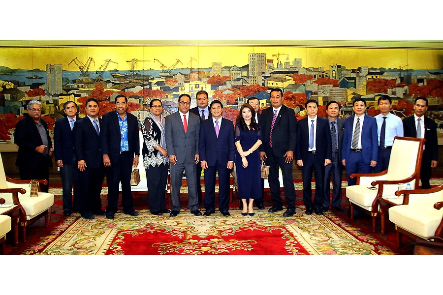 Đồng chí Nguyễn Văn Tùng, Chủ tịch UBND thành phố cùng Đoàn Chủ tịch Quốc hội Liên bang Mai-crô-nê-xi-a.