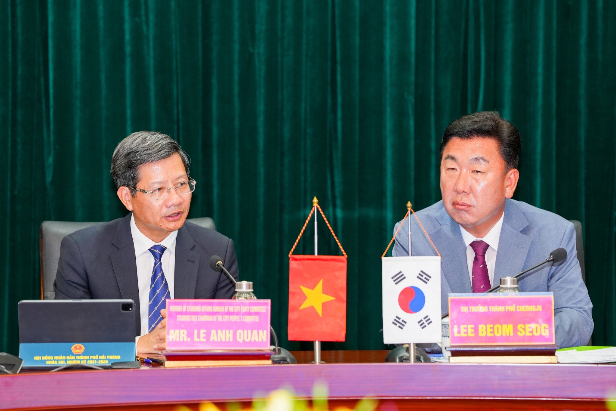 Phó Chủ tịch Thường trực UBND thành phố Lê Anh Quân mong rằng trong thời gian tới, thành phố Hải Phòng sẽ được chia sẻ, học hỏi kinh nghiệm từ thành phố Cheongju trên các lĩnh vực, đặc biệt trong lĩnh vực công nghệ cao.