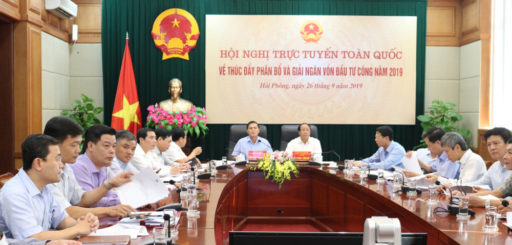 Sáng 26-9, Văn phòng Chính phủ phối hợp với Bộ Kế hoạch và Đầu tư tổ chức Hội nghị trực tuyến toàn quốc về thúc đẩy phân bổ và giải ngân kế hoạch đầu tư công năm 2019. Thủ tướng Chính phủ Nguyễn Xuân Phúc cùng các Phó Thủ tướng Chính phủ: Vương Đình Huệ, Trịnh Đình Dũng đồng chủ trì hội nghị. Dự và chủ trì tại điểm cầu Hải Phòng có Bí thư Thành ủy Lê Văn Thành, Chủ tịch UBND TP Nguyễn Văn Tùng cùng lãnh đạo các sở ngành liên quan…