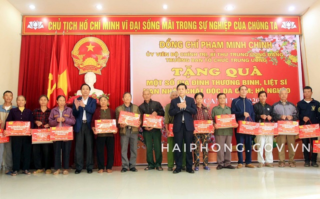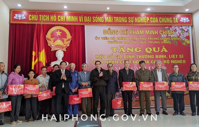 Nhân dịp này, trước thềm Tết Nguyên đán Canh Tý 2020, đồng chí Phạm Minh Chính, Ủy viên Bộ Chính trị, Bí thư Trung ương Đảng, Trưởng Ban Tổ chức Trung ương cùng Đoàn công tác của Ban Chỉ đạo Trung ương về phòng, chống tham nhũng đã trao tặng 120 suất quà cho các gia đình thương binh, liệt sĩ, nạn nhân chất độc da cam, hộ nghèo trên địa bàn huyện Kiến Thụy.