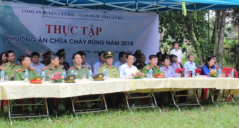 Sáng 18-10, CAH Cát Hải phối hợp với Vườn quốc gia Cát Bà tổ chức thực tập phương án chữa cháy rừng năm 2018 tại Vườn quốc gia Cát Bà. Dự buổi diễn tập có Đại tá Mai Xuân Thắng, Phó Giám đốc CATP, cùng đại diện các sở, ban ngành, đơn vị liên quan.