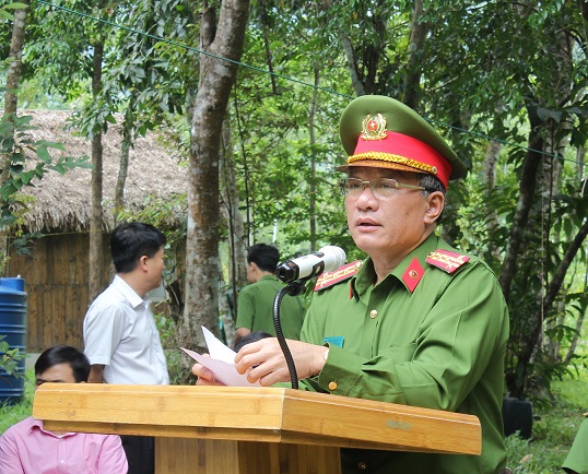 Đại tá Nguyễn Quang Hải, Trưởng CAH Cát Hải phát biểu tại buổi diễn tập