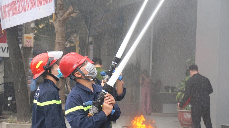 Với các động tác thành thạo, cùng kỹ thuật, chiến thuật chính xác, sự phối hợp chỉ huy và chữa cháy, CNCH nhịp nhàng, đám cháy được dập tắt hoàn toàn…