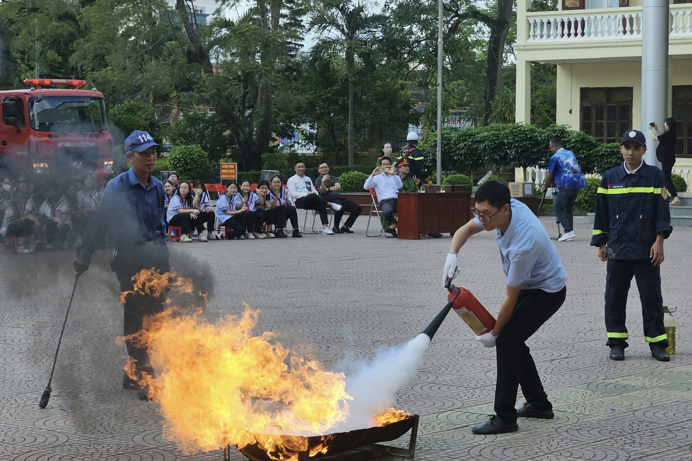 Hưởng ứng “Ngày toàn dân phòng cháy, chữa cháy (04/10)”, Đội Cảnh sát PCCC&CNCH Công an quận Ngô Quyền phối hợp với Trường THCS Chu Văn An tổ chức tuyên truyền và thực tập phương án chữa cháy.
