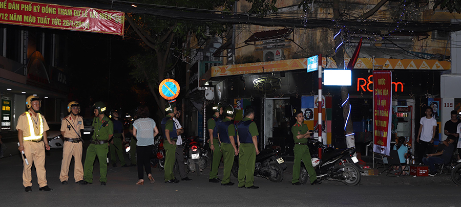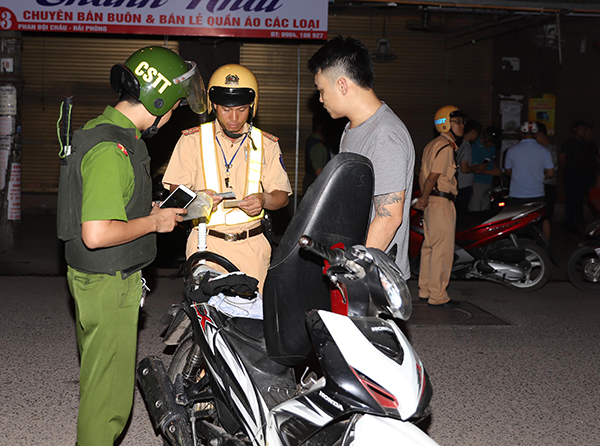 Tổ tuần tra lập tức áp sát. Qua loa phóng thanh, tổ công tác đề nghị kiểm tra hành chính quán và những vị khách chơi đêm. Cùng lúc đó, các chiến sỹ mau lẹ và quyết đoán tỏa ra, yêu cầu các vị khách đêm xuất trình giấy tờ tùy thân, giấy phép lái xe, giấy tờ của những chiếc xe máy dựng bè phè ngay dưới lòng đường của phố mới Tam Bạc. Trong khi các khách chấp hành việc xuất trình giấy tờ và dắt xe để gọn vào cạnh quán thì nhiều chiếc xe “vô chủ” vẫn đứng chơ vơ. Chỉ khi chỉ huy tổ tuần tra yêu cầu đưa những chiếc xe này về phường xử lý mới thấy các nam thanh nữ tú hối hả chạy ra và “lòi đuôi” thiếu đủ thứ nên bị tạm giữ xe. Chủ quán cũng được tổ tuần tra yêu cầu giảm bớt cường độ âm thanh ở mức độ cho phép, dẹp gọn những bàn la liệt hè phố, hướng dẫn khách để xe đúng nơi quy định…