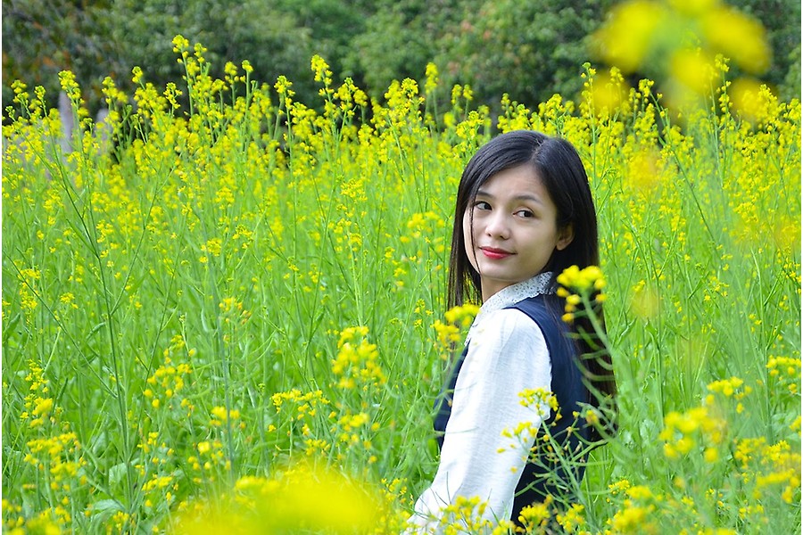 Thiếu nữ mơ màng bên vườn hoa cải