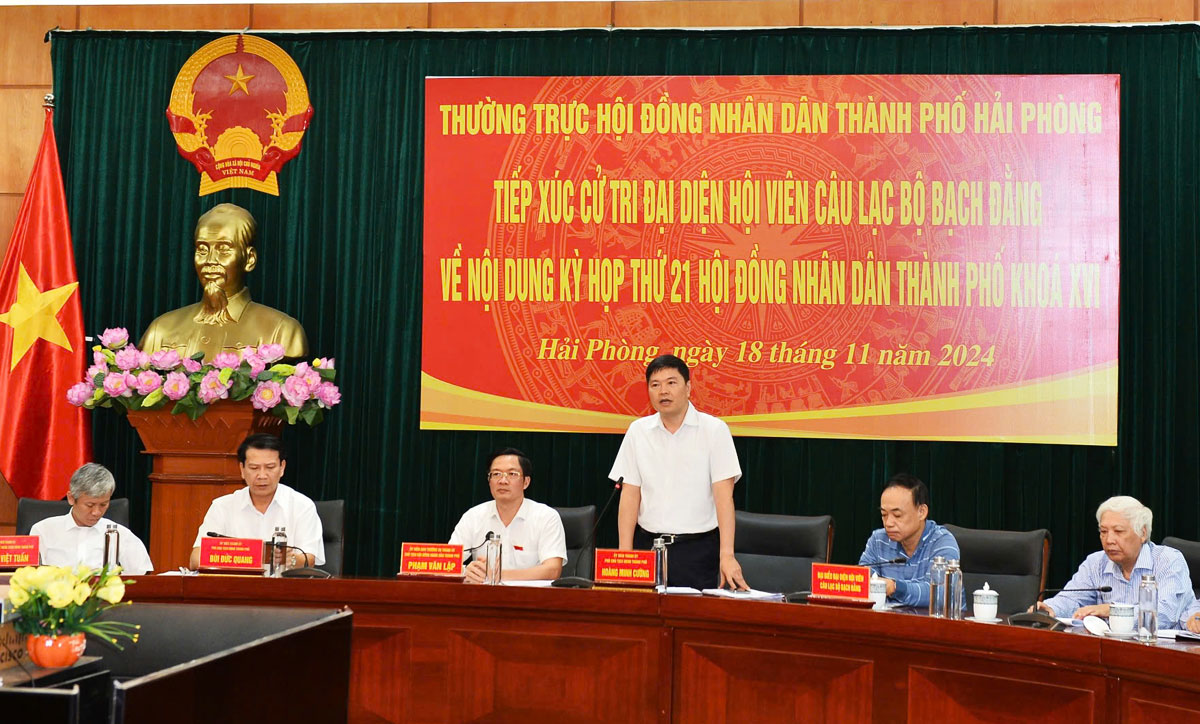 Sau khi nghe ý kiến của cử tri là đại diện hội viên Câu lạc bộ Bạch Đằng, Phó Chủ tịch UBND thành phố Hoàng Minh Cường đã thông tin, trao đổi trực tiếp một số nội dung được các cử tri quan tâm, phản ánh liên quan đến nội dung của những Tờ trình mà UBND thành phố sẽ trình tại kỳ họp cuối năm 2024; đồng thời tiếp thu các ý kiến của cử tri để chỉ đạo các Sở, ban, ngành giải quyết trong thời gian tới.
