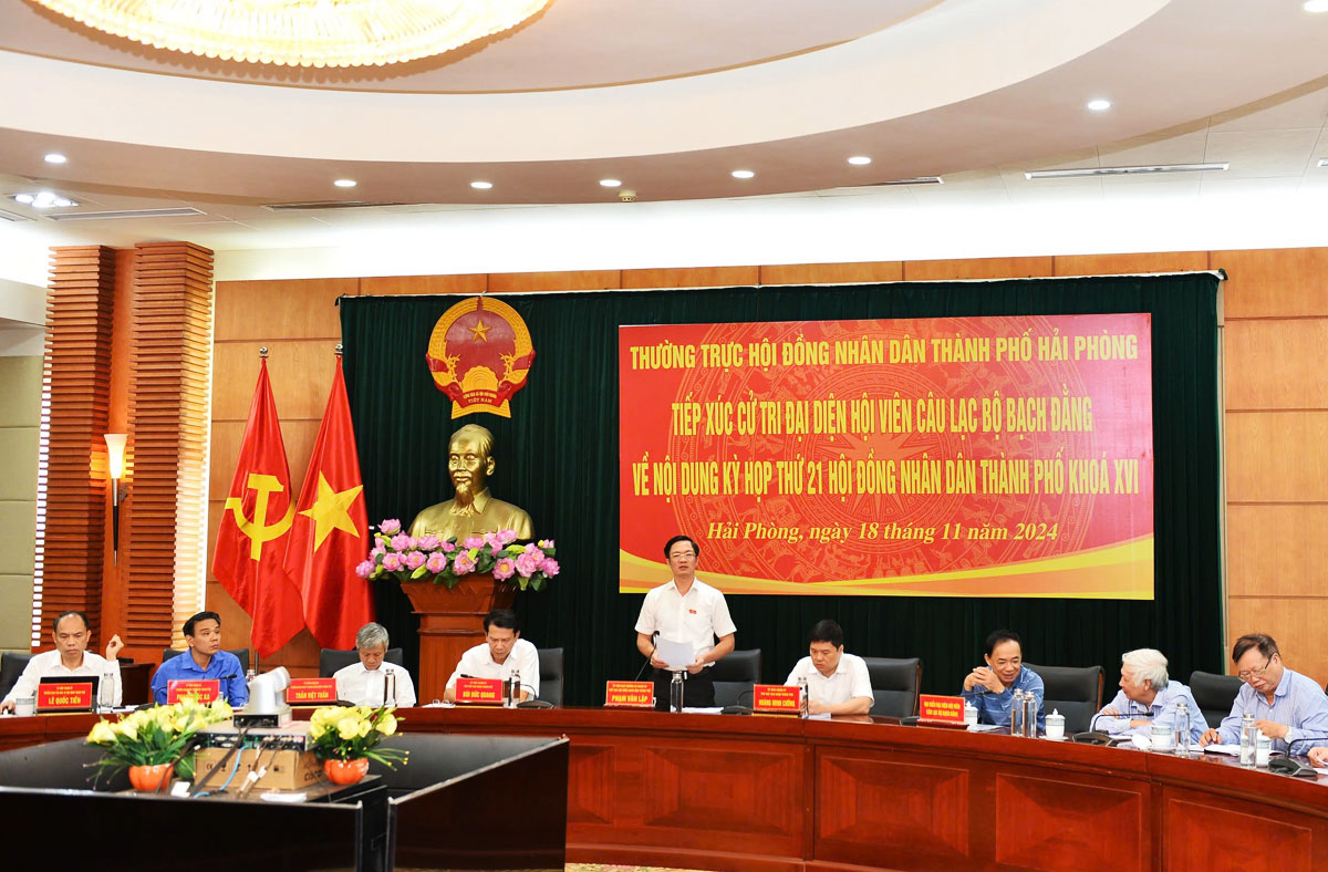 Tại cuộc tiếp xúc, cử tri là đại diện hội viên Câu lạc bộ Bạch Đằng được thông tin về nội dung, thời gian tiến hành Kỳ họp thường lệ cuối năm 2024, HĐND thành phố khóa XVI, nhiệm kỳ 2021-2026 và các nội dung quan trọng dự kiến sẽ được HĐND thành phố xem xét, quyết định và thông qua tại Kỳ họp.
