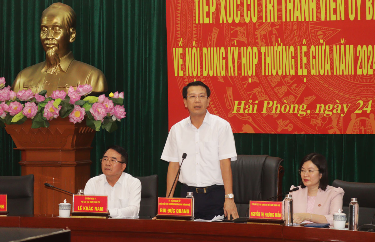 Trân trọng cảm ơn những ý kiến tâm huyết, trách nhiệm của thành viên Ủy ban MTTQ Việt Nam thành phố đối với sự phát triển của Hải Phòng, Phó Chủ tịch HĐND thành phố Bùi Đức Quang nhấn mạnhh, Thường trực HĐND thành phố tiếp thu cao nhất các ý kiến tham gia, kịp thời chỉ đạo các cơ quan liên quan điều chỉnh, sớm hoàn thiện các nội dung trình kỳ họp thường lệ giữa năm. Đối với những ý kiến liên quan đến cơ chế, chính sách an sinh xã hội, bảo trợ, khuyến học, khuyến tài, Phó Chủ tịch HĐND thành phố giao Ban Văn hóa-Xã hội HĐND thành phố rà soát, đánh giá hiệu quả những Nghị quyết do HĐND thành phố đã ban hành, góp phần để những Nghị quyết trên thực sự đi vào cuộc sống.