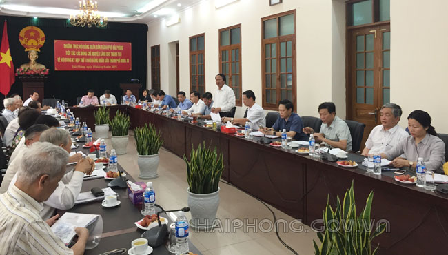 Cử tri nguyên lãnh đạo chủ chốt của thành phố đánh giá trong 6 tháng đầu năm 2019, Thành ủy, HĐND, UBND thành phố tiếp tục nhận được sự quan tâm ủng hộ của Trung ương Đảng, Quốc hội, Chính phủ; sự giúp đỡ của các Bộ, ngành Trung ương và sự hợp tác của các địa phương, thành phố Hải Phòng đã đạt được những kết quả nổi bật trên các lĩnh vực; đặc biệt thành phố đã được Bộ Chính trị ban hành Nghị quyết số 45 về xây dựng và phát triển thành phố Hải Phòng đến năm 2030, tầm nhìn đến năm 2045 tạo cho Hải Phòng bước phát triển mới toàn diện hơn, bền vững hơn. Thành phố đã đổi mới công tác lãnh đạo, chỉ đạo điều hành với tinh thần dám nghĩ, dám làm. Nổi bật với tốc độ tăng trưởng kinh tế, thu ngân sách tăng cao; thu hút được nhiều tập đoàn, doanh nghiệp lớn đến đầu tư; đã tập trung đẩy mạnh phát triển kết cấu hạ tầng giao thông, hạ tầng đô thị, nông thôn, hạ tầng dịch vụ; nhiều công trình, dự án lớn được khánh thành và triển khai mới; thành phố đã triển khai tốt cơ chế hỗ trợ vật tư xi măng, gạch lát vỉa hè, pha đèn chiến sáng và cây xanh để cải tạo, nâng cấp hè đường, ngõ đã xuống cấp; công tác văn hóa, xã hội, an sinh xã hội tiếp tục được quan tâm, đời sống vất chất, tinh thần của người dân được nâng lên; đã tổ chức được nhiều sự kiện lớn khẳng định được hình ảnh và vị thế của thành phố. Cử tri và nhân dân, cán bộ đảng viên vui mừng, phấn khởi với những kết quả đã đạt được, tin tưởng vào sự lãnh đạo, chỉ đạo của lãnh đạo thành phố.