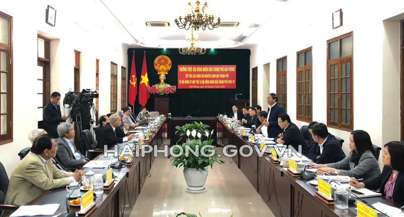 Cử tri là các đồng chí nguyên lãnh đạo chủ chốt thành phố đề nghị thành phố cần có giải pháp tích cực để đào tạo nguồn nhân lực chất lượng cao phục vụ yêu cầu sản xuất kinh doanh nhất là trong thời đại công nghiệp 4.0; kiên quyết không chấp nhận những dự án có tiềm ẩn về ô nhiễm môi trường; đẩy nhanh tiến độ dự án thoát nước mưa, nước thải ở Vĩnh Niệm (quận Lê Chân); xử lý tốt khu bãi rác ở Đình Vũ (quận Hải An); tiếp tục đẩy mạnh cải cách thủ tục hành chính; thành phố sớm có chủ trương xây dựng tượng đài chiến thắng Cát Bi; nên đăng cai tổ chức các sự kiện, hội nghị quốc tế; nghiên cứu quy hoạch không gian ngầm, biển, núi, dự án xây dựng cầu hoặc hầm nối từ Đình Vũ sang Vũ Yên…