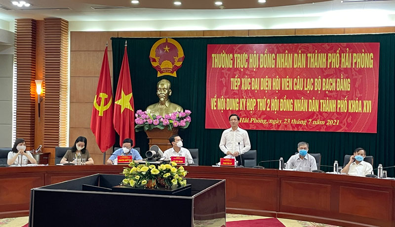 Sáng 23/7, Thường trực HĐND thành phố tổ chức hội nghị tiếp xúc cử tri là thành viên Câu lạc bộ Bạch Đằng lấy ý kiến tham gia vào nội dung kỳ họp thứ 2 HĐND thành phố khóa XVI. Đồng chí Phạm Văn Lập, Ủy viên Ban Thường vụ Thành ủy, Chủ tịch HĐND thành phố chủ trì cuộc họp.