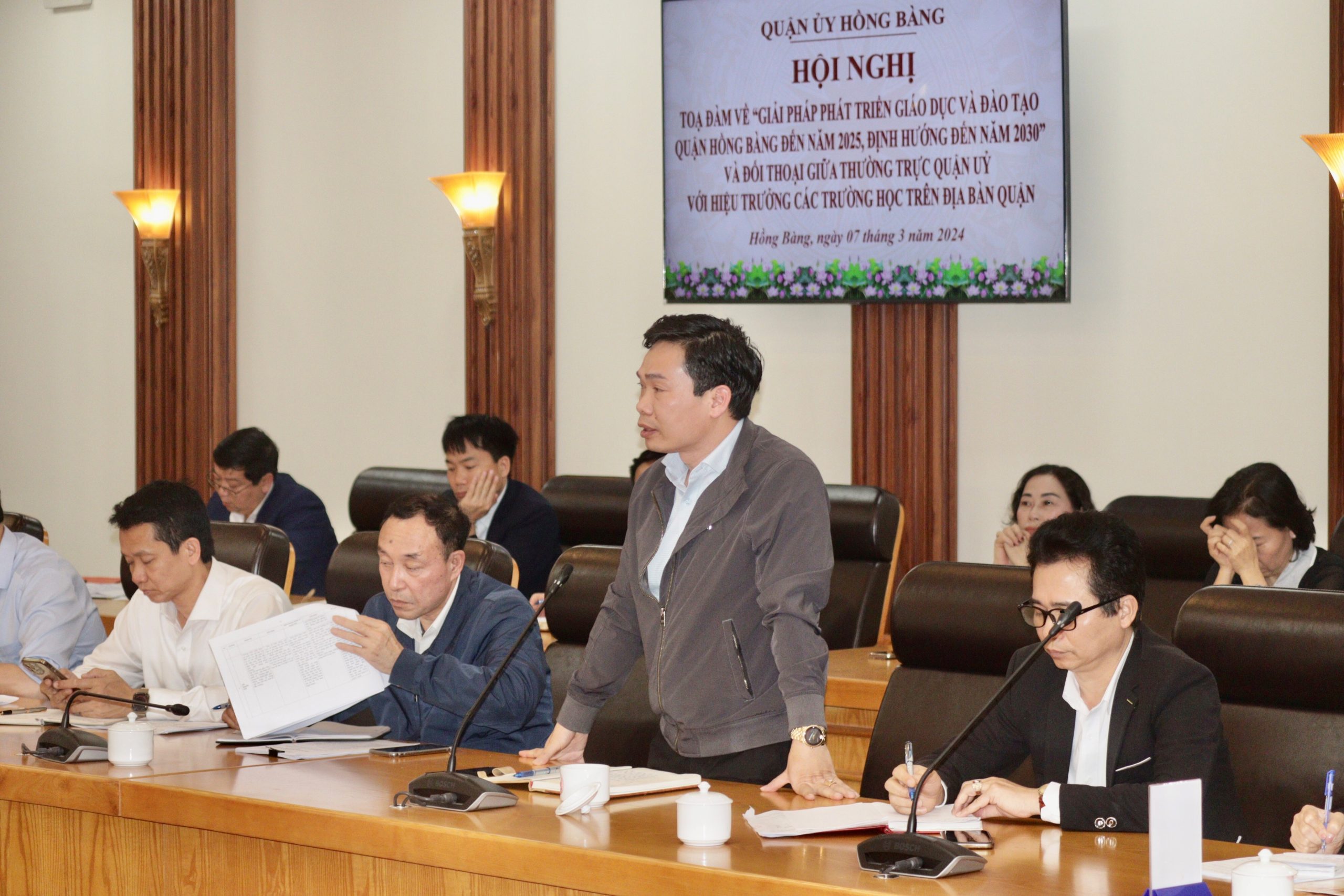 Chiều 7/3, đồng chí Lê Ngọc Trữ, Ủy viên Ban Thường vụ Thành ủy, Bí thư Quận ủy Hồng Bàng chủ trì Tọa đàm về “Giải pháp phát triển giáo dục và đào tạo quận đến năm 2025, định hướng 2030” và đối thoại giữa Thường trực Quận ủy với Hiệu trưởng các trường học trên địa bàn quận.