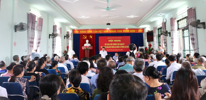 Đồng chí Lê Trung Kiên, Ủy viên Thành ủy, Bí thư Quận ủy chủ trì Hội nghị. Cùng dự có các đồng chí Ủy viên Ban Thường vụ Quận ủy; lãnh đạo HĐND, UBND, Ủy ban MTTQ, lãnh đạo các phòng, ban, đơn vị thuộc quận Lê Chân. Đông đảo cán bộ, nhân dân 2 phường tham dự cuộc đối thoại.