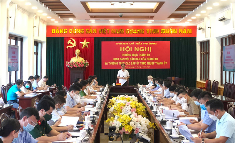 Đồng chí Phó Bí thư Thường trực Thành ủy để nghị các cấp ủy cần tăng cường lãnh đạo, chỉ đạo thực hiện tốt công tác phòng, chống dịch bệnh COVID-19 tại địa phương, đơn vị; chủ động xây dựng các kịch bản phòng, chống dịch. Trong phát triển kinh tế-xã hội tiếp tục quan tâm đến một số công việc như: công tác giải phóng mặt bằng, xây dựng nông thôn mới; thu ngân sách; bảo đảm tốt công tác an ninh chính trị, trật tự an toàn xã hội.