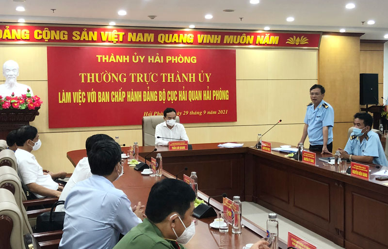 Tại cuộc làm việc, Cục Hải quan Hải Phòng kiến nghị Thành ủy, UBND thành phố chỉ đạo các cơ quan liên quan hỗ trợ Cục hoàn tất thủ tục để sớm khởi công xây dựng trụ sở Chi cục Hải quan cửa khẩu cảng Hải Phòng khu vực 1 đảm bảo đáp ứng yêu cầu triển khai mô hình thông quan tập trung, hải quan thông minh trong tương lai; chỉ đạo các cơ quan hữu quan của thành phố sớm hoàn thành các thủ tục hành chính có liên quan để sớm khởi công xây dựng kho tạm giữ tang vật vi phạm và giao cho Cục Hải quan thành phố Hải Phòng sử dụng; chỉ đạo các đơn vị liên quan phối hợp với Cục bàn giải pháp để hỗ trợ, tháo gỡ vướng mắc, khó khăn liên quan quy định về điều kiện kiểm tra, giám sát hải quan đối với doanh nghiệp chế xuất trên địa bàn thành phố…