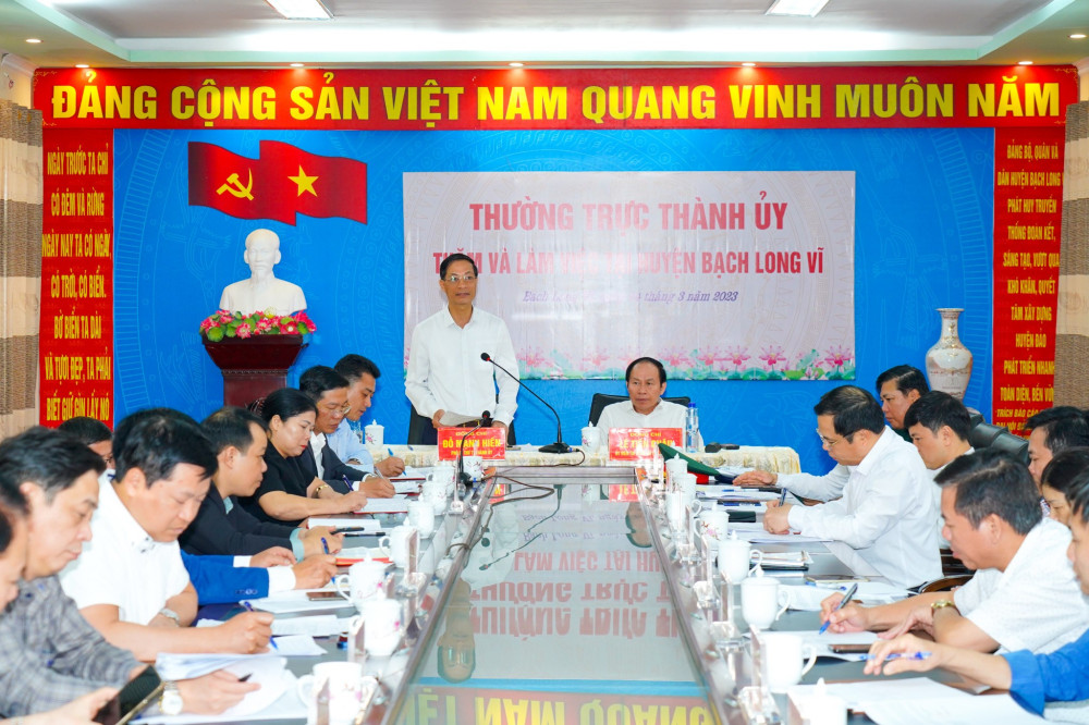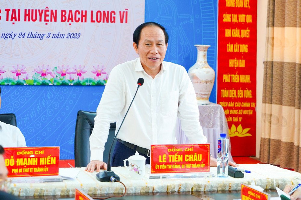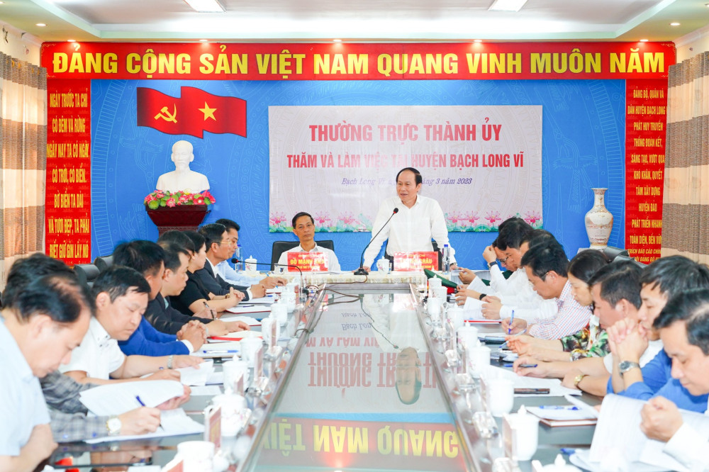 Ghi nhận và đánh giá cao những nỗ lực của Đảng bộ, chính quyền quân và dân huyện Bạch Long Vỹ dù phải đối mặt với nhiều khó khăn, khắc nghiệt của đảo tiền tiêu. Đồng chí Bí thư Thành ủy cho rằng, với lợi thế đặc biệt, không chỉ hướng tới mục tiêu xây dựng Bạch Long Vỹ trở thành Trung tâm hậu cần nghề cá khu vực phía Bắc, Bạch Long Vỹ còn nhiều tiềm năng để phát triển thành một Trung tâm du lịch xanh.