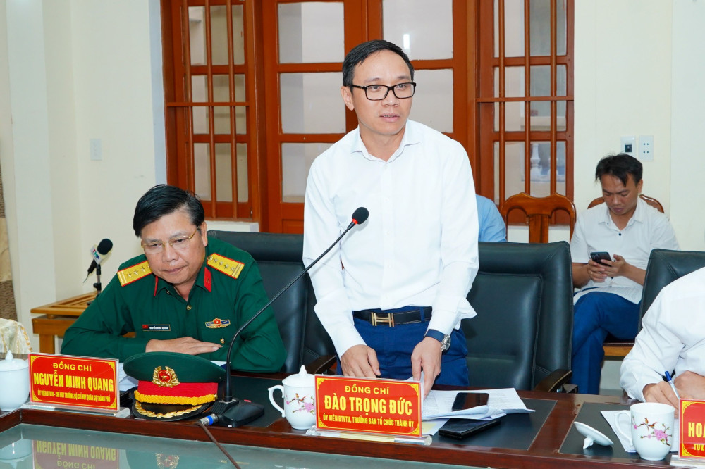 Cùng dự làm việc có các đồng chí Đỗ Mạnh Hiến, Phó Bí thư Thường trực Thành uỷ; Nguyễn Minh Quang, Uỷ viên BTV thành uỷ, Chỉ huy Trưởng Bộ Chỉ huy quân sự thành phố; Đào Trọng Đức, Uỷ viên BTV thành uỷ, Trưởng ban Tổ chức Thành uỷ; Phó Chủ tịch UBND thành phố Hoàng Minh Cường cùng đại diện các Sở, ban, ngành liên quan.