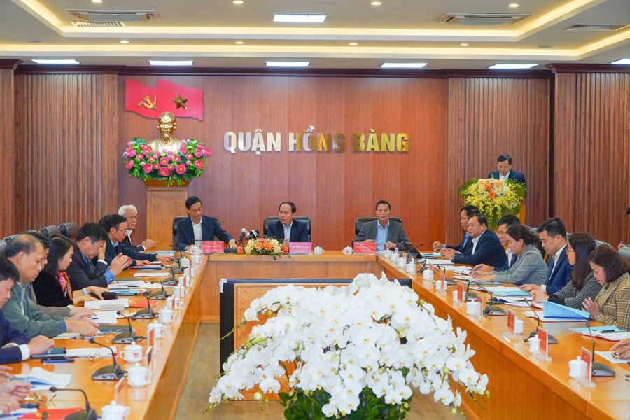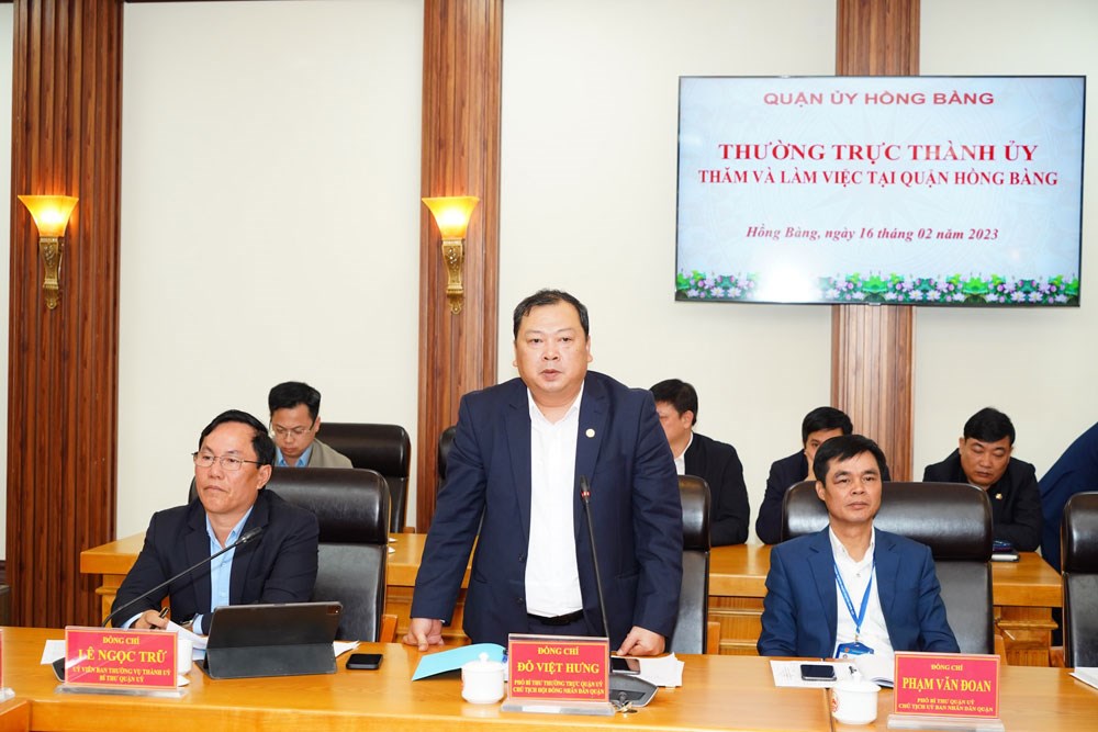 Sáng 16/2, Thường trực Thành ủy làm việc với Ban Chấp hành Đảng bộ quận Hồng Bàng về kết quả thực hiện Nghị quyết Đại hội Đảng bộ quận lần thứ XXIII và Nghị quyết Đại hội thành phố lần thứ XVI, Nghị quyết XIII của Đảng.