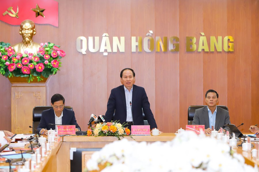 Qua nghe báo cáo và ý kiến của các đại biểu, phát biểu kết luận cuộc làm việc, đồng chí Lê Tiến Châu, Bí thư Thành ủy đánh giá, quận Hồng Bàng đã luôn đổi mới phương thức lãnh đạo, chỉ đạo, điều hành, tổ chức thực hiện theo hướng khoa học, thực tiễn, hiệu quả; phát huy tinh thần đoàn kết thống nhất cao, vượt qua khó khăn thử thách. Công tác quy hoạch, kiện toàn, bổ sung, điều động, luân chuyển cán bộ từ quận đến cơ sở được thực hiện bài bản, đúng quy trình, đúng thẩm quyền, làm tốt công tác đào tạo, bồi dưỡng cán bộ. Công tác kiểm tra, giám sát, kỷ luật của Đảng được chú trọng phát hiện và xử lý vi phạm. Công tác dân vận được đổi mới, hướng về cơ sở. Sức mạnh khối đại đoàn kết toàn dân được phát huy; tiếp tục củng cố niềm tin, tạo được sự đồng thuận, ủng hộ của Nhân dân đối với các chủ trương của Quận ủy, các cấp ủy và chính quyền các cấp. Công tác quản lý nhà nước trên tất cả các lĩnh vực tiếp tục được chấn chỉnh; kỷ luật, kỷ cương công vụ được tăng cường. Công tác quản lý đô thị, tài nguyên và môi trường, việc thực hiện các dự án được quan tâm chỉ đạo quyết liệt. Cải cách hành chính tiếp tục được tập trung chỉ đạo. Các chính sách an sinh xã hội được triển khai kịp thời, hiệu quả…
