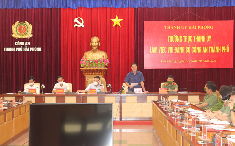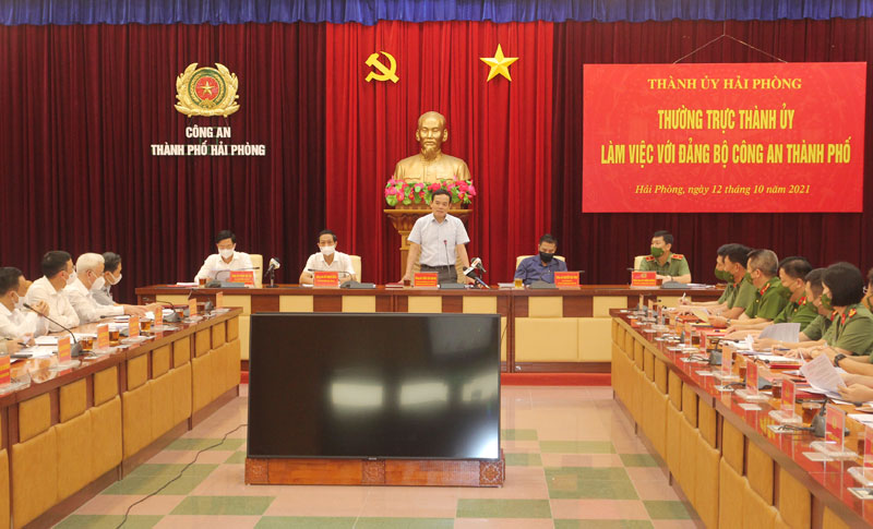 Chiều 12/10, Thường trực Thành ủy làm việc với Đảng bộ Công an thành phố về một số nhiệm vụ. Đồng chí Trần Lưu Quang, Ủy viên Trung ương Đảng, Bí thư Thành ủy, Trưởng Đoàn ĐBQH thành phố Hải Phòng chủ trì cuộc làm việc. Cùng dự có các đồng chí: Nguyễn Văn Tùng, Phó Bí thư Thành ủy, Chủ tịch UBND thành phố; Đỗ Mạnh Hiến, Phó Bí thư Thường trực Thành ủy; các đồng chí Ủy viên Ban Thường vụ Thành ủy: Phạm Văn Lập, Chủ tịch HĐND thành phố; Đặng Bá Cường, Trưởng Ban Nội chính Thành ủy; Nguyễn Đình Chuyến, Chủ nhiệm Ủy ban Kiểm tra Thành ủy; Đào Trọng Đức, Trưởng Ban Tổ chức Thành ủy và lãnh đạo các sở, ngành liên quan.