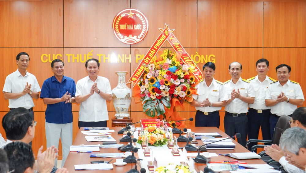 Nhân dịp này, Thường trực Thành ủy đã tặng hoa, quà chúc mừng Cục Thuế thành phố Hải Phòng nhân kỷ niệm 33 năm ngày thành lập Cục Thuế thành phố Hải Phòng (01/10/1990-01/10/2023).
