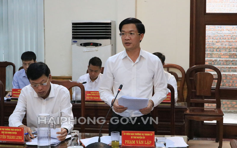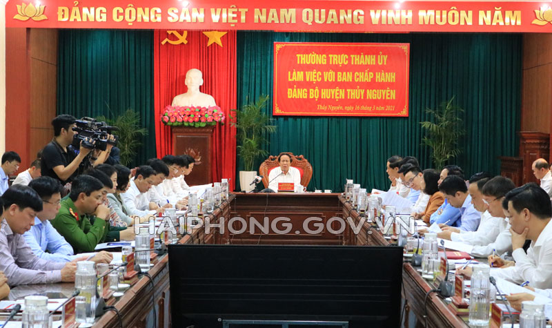 Qua nghe báo cáo và ý kiến của các đại biểu, đồng chí Bí thư Thành ủy Lê Văn Thành đánh giá cao công tác chuẩn bị báo cáo của Huyện ủy Thủy Nguyên đối với các nội dung phục vụ cho cuộc làm việc và thống nhất cao với báo cáo, ý kiến, các giải pháp, kiến nghị được nêu ra tại cuộc làm việc. Đồng chí khẳng định vị trí, vai trò quan trọng của huyện Thủy Nguyên đối với sự phát triển của thành phố, đất nước và nhấn mạnh, thời gian qua, thành phố đã đầu tư rất lớn cho huyện Thủy Nguyên, xác định được tầm quan trọng của Thủy Nguyên đối với thành phố. Vì vậy, thành phố đã đầu tư mạnh về mọi mặt như: đầu tư nguồn lực, phân bổ nguồn ngân sách, các dự án lớn cho huyện… Những kết quả mà huyện đã đạt được là rất lớn, có sự thay đổi đồng bộ không chỉ khu vực trung tâm huyện mà còn lan tỏa rộng tới các khu vực; diện mạo đô thị, hạ tầng giao thông có sự thay đổi rõ rệt. Tốc độ tăng trưởng, thu ngân sách của huyện tăng cao; công tác GPMB cũng dẫn đầu các địa phương như: tuyến đường 359, Khu đô thị Bắc sông Cấm, cầu Dinh, bãi cọc Cao Quỳ…. Công tác xây dựng Đảng được quan tâm lãnh đạo, chỉ đạo toàn diện, đồng bộ và thể hiện ở sự bình yên, ổn định tình hình, không khí và niềm tin trong Nhân dân đối với sự lãnh đạo, chỉ đạo của huyện.