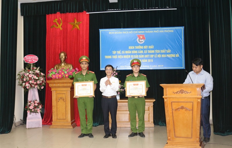 Kịp thời biểu dương Thượng úy Đỗ Thế Văn và đồng đội, Thành đoàn Hải Phòng vừa tổ chức khen thưởng đột xuất tập thể Chi đoàn CAP Lạch Tray và cá nhân đồng chí Đỗ Thế Văn về thành tích xuất sắc trong thực hiện nhiệm vụ bảo đảm ANTT dịp Lễ hội Hoa phượng đỏ Hải Phòng năm 2019.