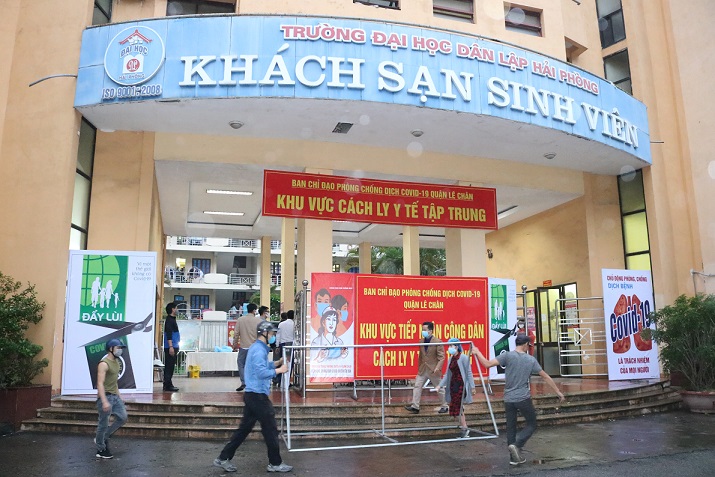 Sau khi được lãnh đạo thành phố kiểm tra, đánh giá đủ điều kiện về cơ sở vật chất và nhân lực phục vụ, đồng ý cho phép đón nhận người về cách ly, sáng 20-3, quận Lê Chân phối hợp cùng các lực lượng chức năng tổ chức đón đoàn cách ly y tế tập trung đầu tiên tại Khách sạn sinh viên, Trường Đại học Quản lý và Công nghệ Hải Phòng.