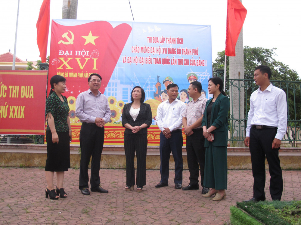 Chiều 8/10, Đoàn kiểm tra công tác tuyên truyền Đại hội Đảng bộ thành phố lần thứ XVI làm việc tại các huyện Vĩnh Bảo, Tiên Lãng, An Lão và quận Kiến An. Tham dự Đoàn kiểm tra có các đồng chí Lê Khắc Nam, Ủy viên Ban Thường vụ Thành ủy, Phó Chủ tịch UBND thành phố; Đào Khánh Hà, Ủy viên Ban Thường vụ Thành ủy, Trưởng ban Ban Tuyên giáo Thành ủy; đại diện lãnh đạo các Sở, ngành, địa phương liên quan.